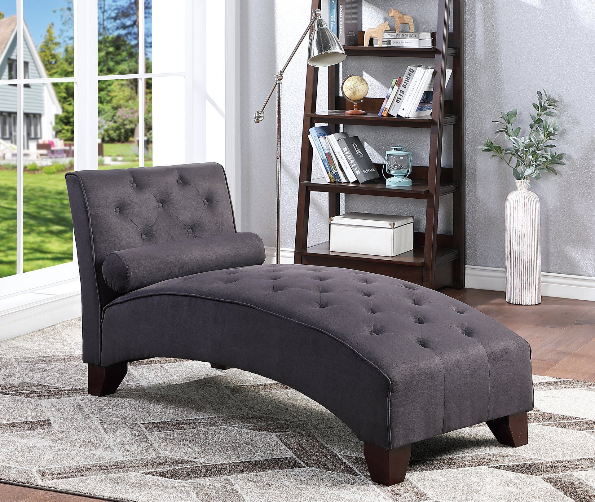 A chic and sophisticated in design, this chaise lounge features a dramatically styed unit featuring accent tufting from the head support to the bench. Draped in microfiber, you can choose from a variety of Earthly hues. Each unit includes short wide legs for elevated support. Available in ebony, chocolate, and grey.