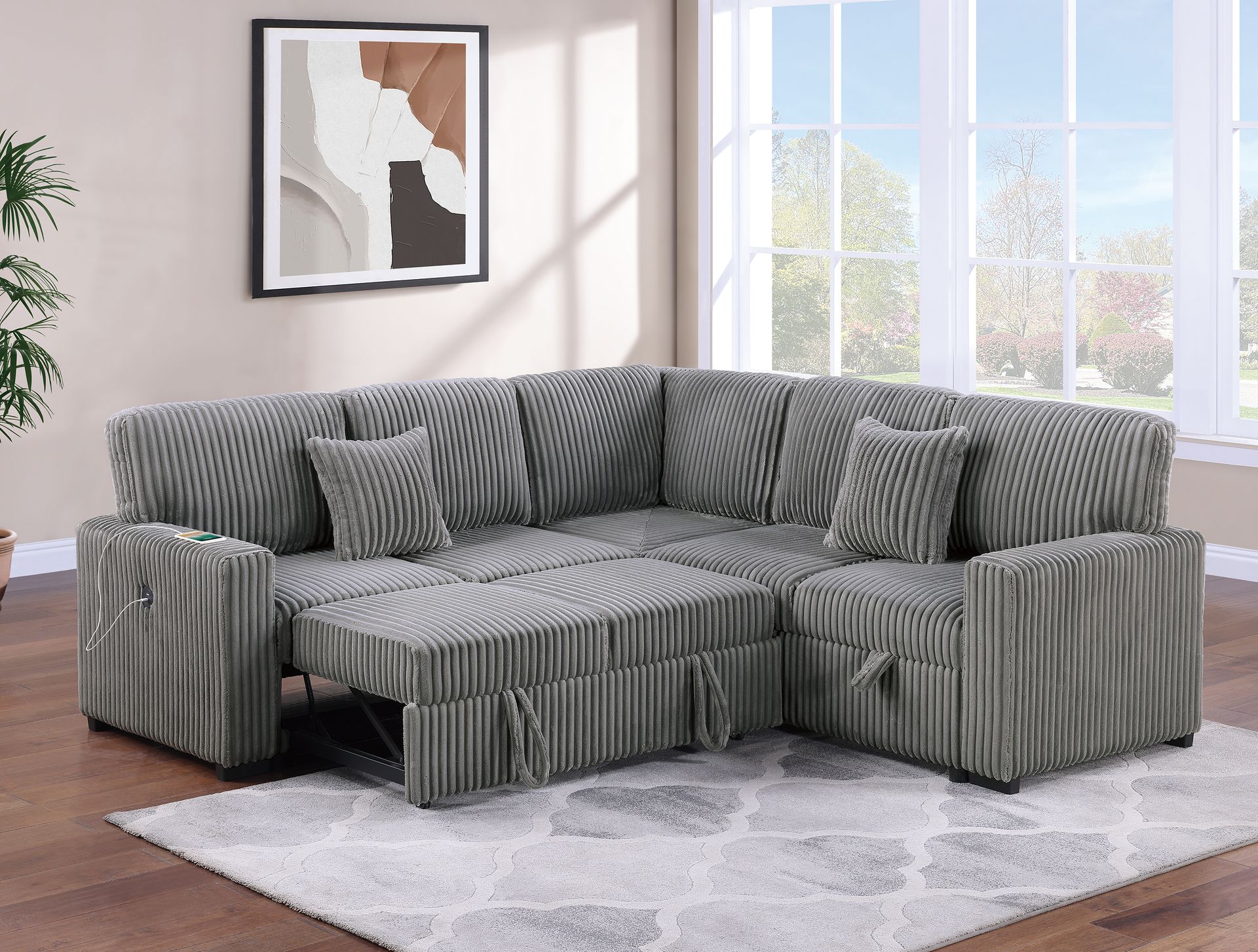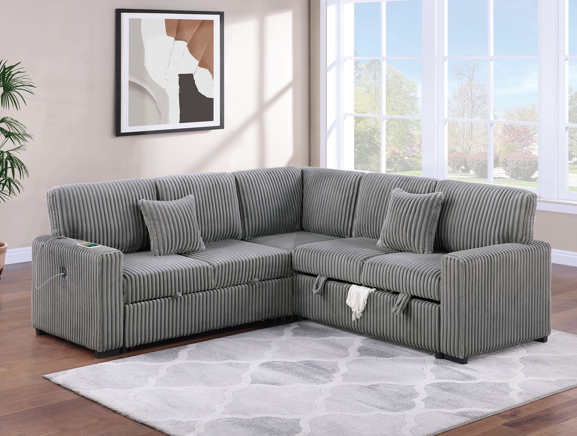 Reversible L/R Storage Sofa w/ Pull-Out Bed: 57" x 34" / 60" x 37" H