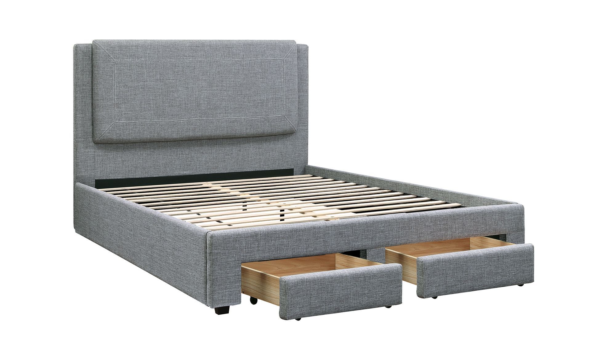 Bed: Faux Linen/Plywood + Plastic Legs + Wood Slats