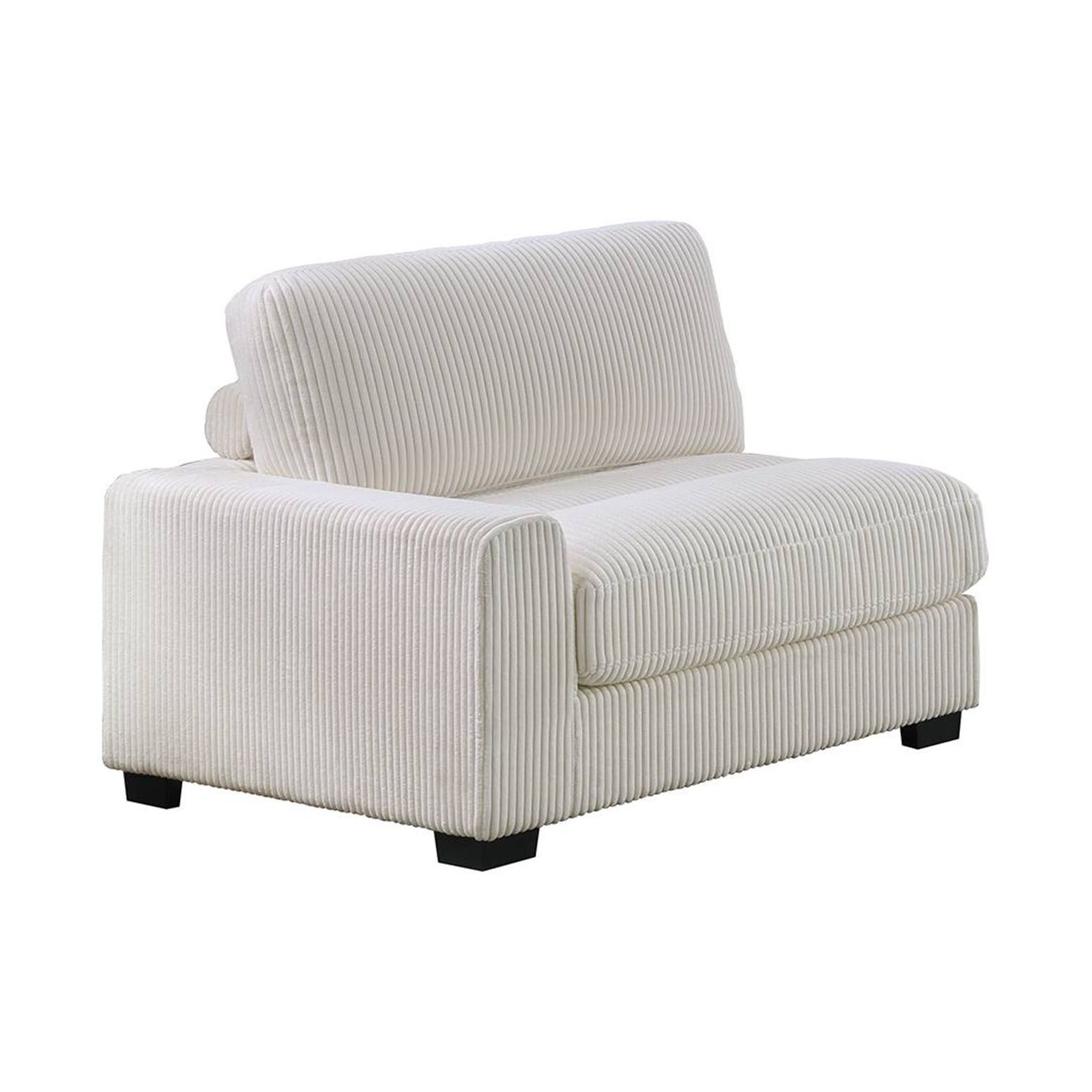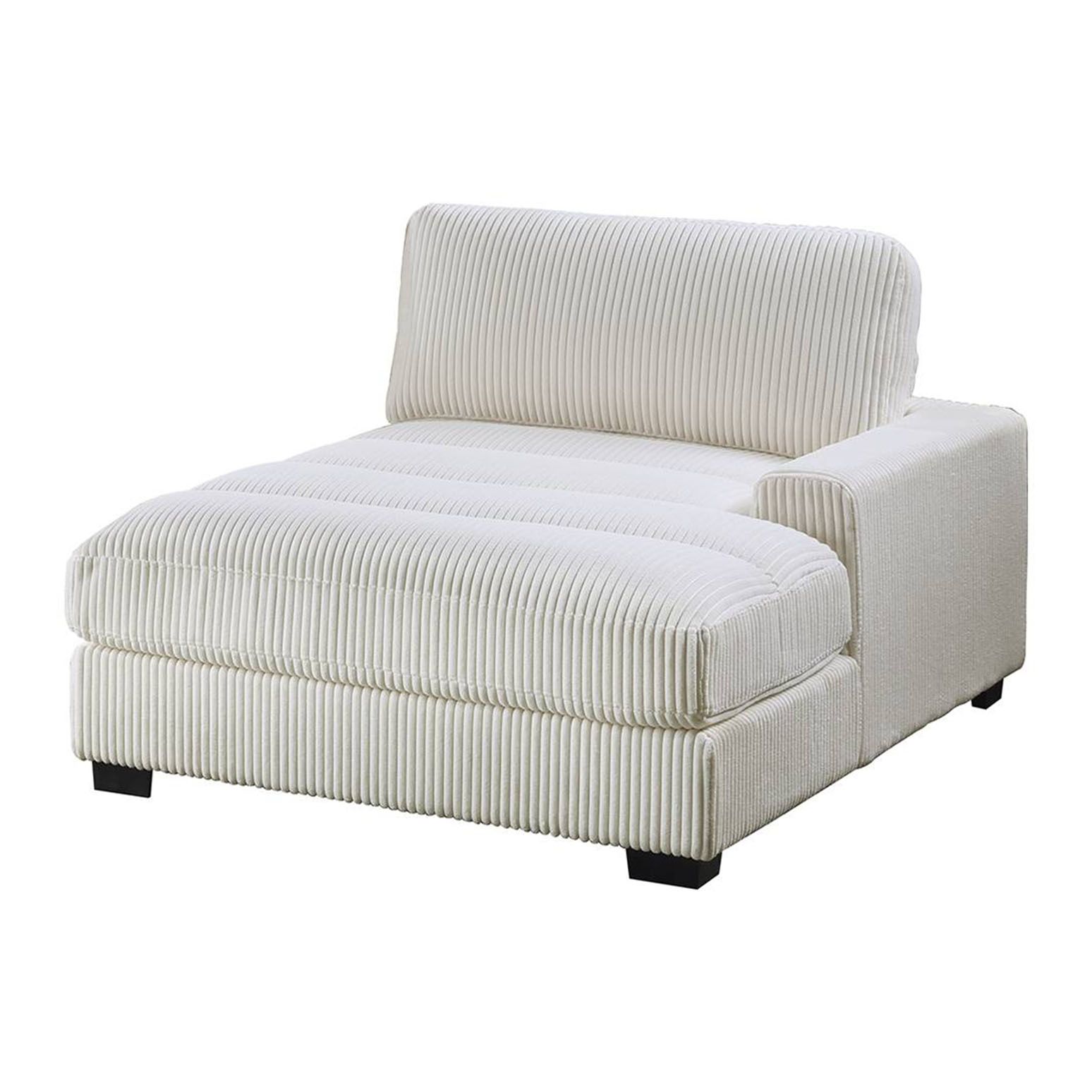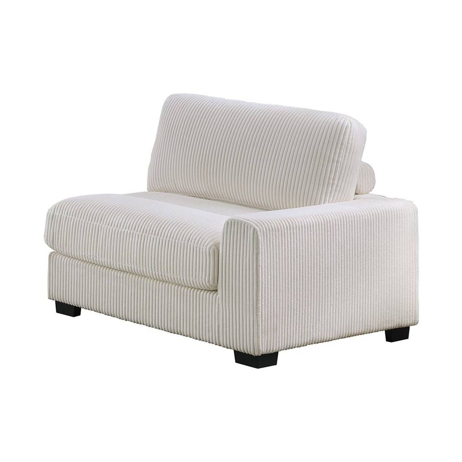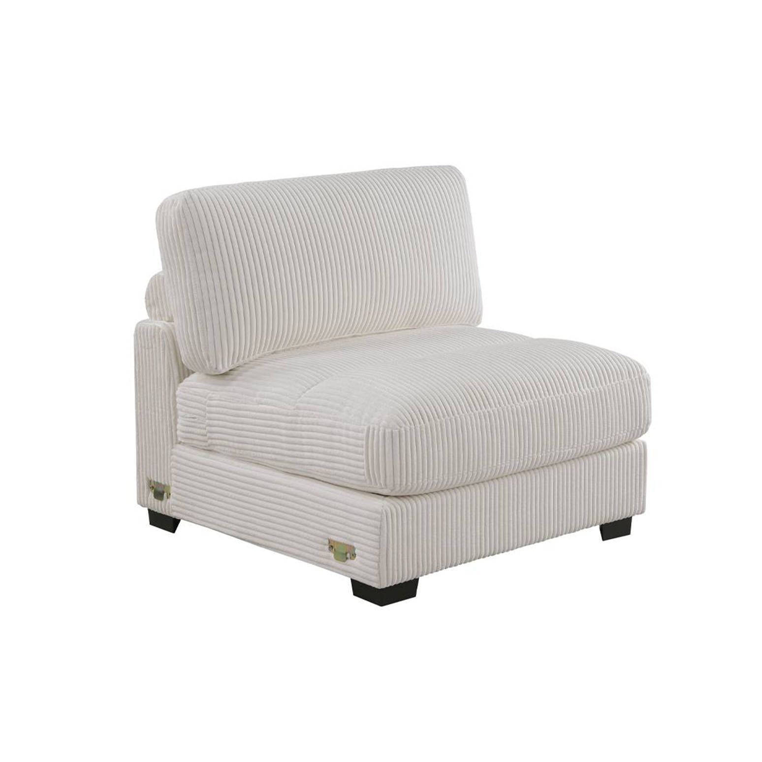 An attentively designed living space deserves a seating arrangement to match. With the flexibility of separate pieces, you can create almost any shape, letting you design your furniture to suit your living room needs. This compact modular sectional stands in low legs that are just barely visible giving it its modern look. It’s wrapped in super soft corduroy in a warm neutral hue that makes it even more inviting to family and friends.