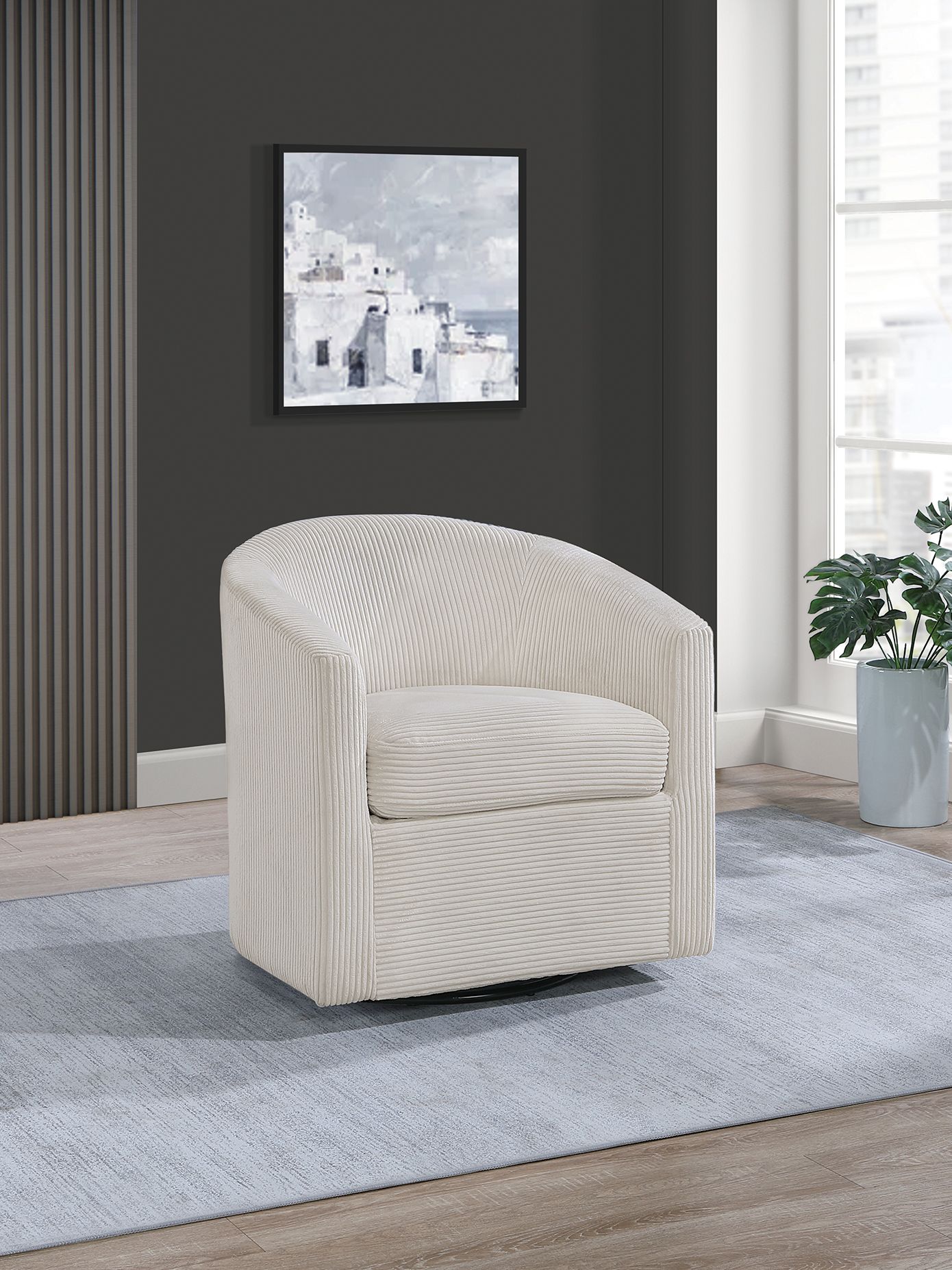 Sink into cozy comfort with this corduroy swivel chair, where style meets everyday ease. With its space-conscious size it’s the perfect accent for compact corners or spacious lounges. Wrapped in soft corduroy fabric, it invites touch and adds a warm, textured look to your living space. The distinctive U-shaped backrest design cradles you gently, offering supportive seating that encourages you to unwind. A tight back maintains a neat, structured silhouette while the removable seat cushion allows for easy cleaning and occasional fluffing to keep it fresh. Designed with everyday convenience in mind, this chair swivels a full 360 degrees—ideal for conversational seating or simply enjoying your space from every angle. Best of all, it arrives fully assembled, so there’s no hassle—just unbox and relax. Whether placed in a bedroom nook, reading corner, or living room setup, this chair brings comfort and function without overwhelming your decor.