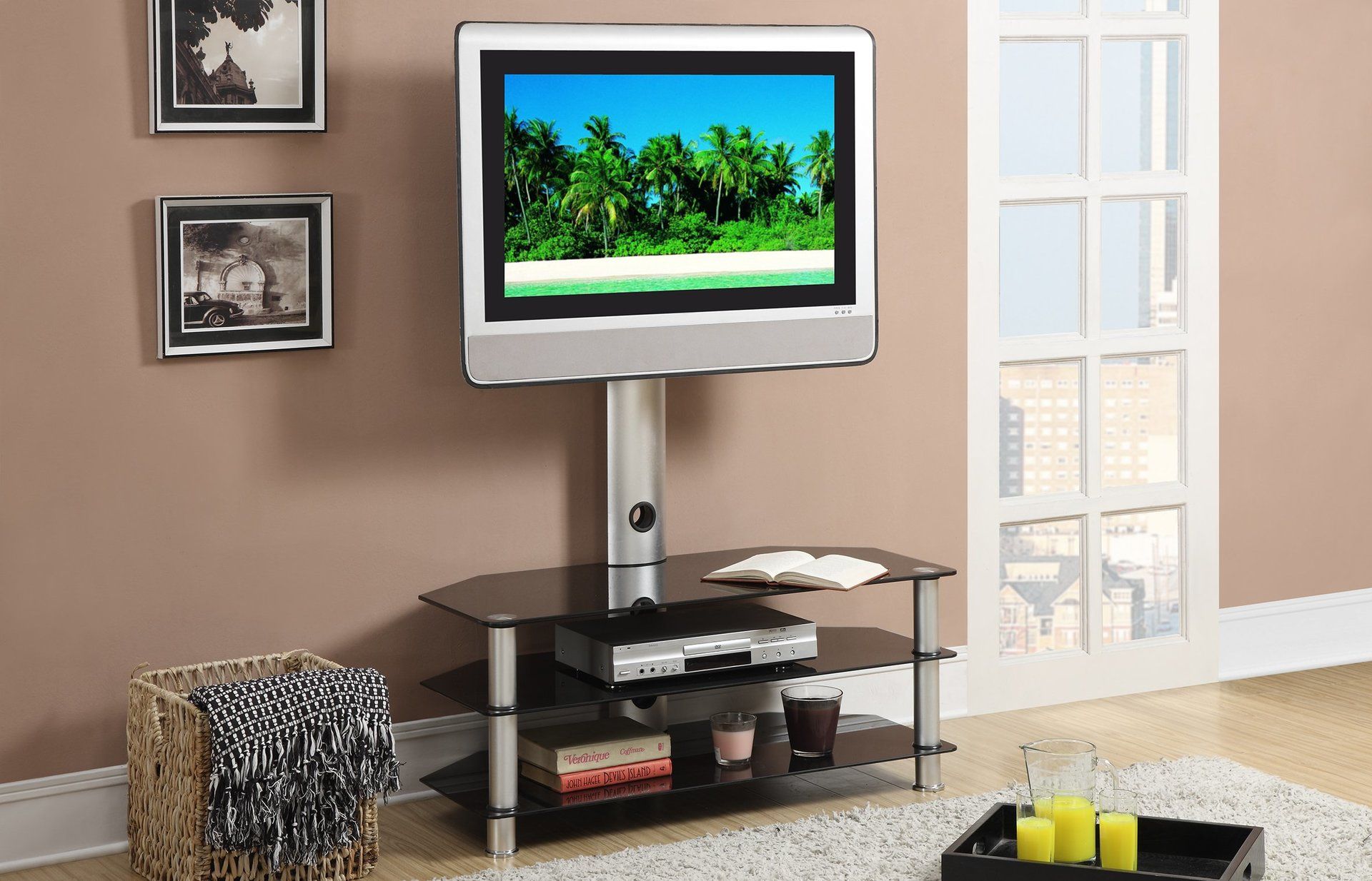 Amaze your friends and family with an entertainment TV stand to display a TV sized up to 50" with the silver and black unit.